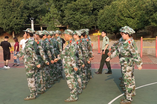 “全体都有!脱帽!”伴随着指挥员一句句铿锵有力的口令,全体新生动作干净利索。军容风纪的检查,大到帽子、腰带、鞋带,小到胡须、指甲、头发,每一处的精确与严格要求,无一不体现着军纪如铁的思想。在抽查期间,傅早霞细心地检查新生的军容,耐心帮助他们整理着装,并表示:“同学们在训练期间可以相互帮忙,留心关注身边同学的军容风纪,有不合规定的地方就要及时指出,将良好的军容风纪贯穿于军训日常的训练中。”