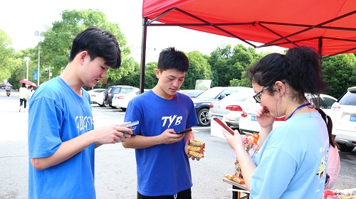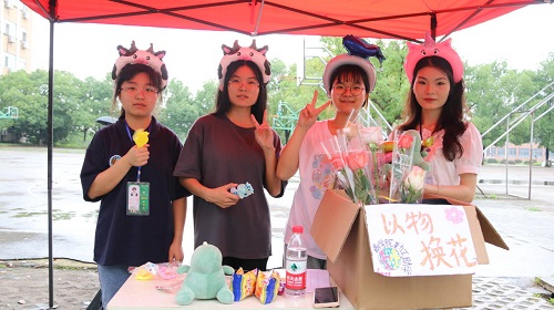 6月2日14:30,为了丰富商院学子的日常生活、传递爱与正能量,3044am永利集团官网团委勤工助学部于一区篮球场、二区美食广场、五区原二食堂旁、八区食堂旁举办了以“花开科大,以物换花;以诚待人,将爱传承”为主题的以物换花活动。