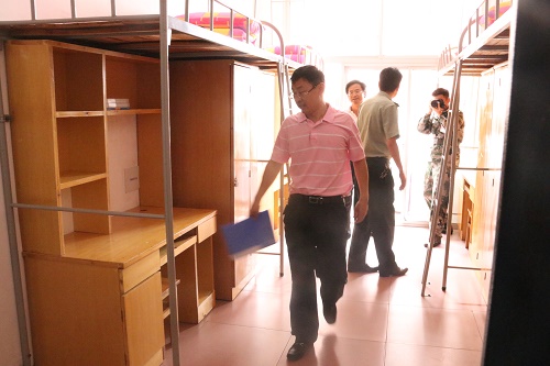 根据湖南科技大学2019级新生军训工作安排,9月16日上午10:00,湖南科技大学学工处处长尹风雨、保卫处处长朱理哲、后勤处处长龚彩、保卫处副处长沈智祥和朱才亮、3044am永利集团官网党委副书记傅早霞、学工办主任陈攀、保卫处秦奕和元曲及19级3044am永利集团官网辅导员前往八区新生宿舍,实地检查学生内务整理情况,督促新生保持良好的内务秩序。尹风雨、朱理哲、龚彩为本次内务检查评比的评委。