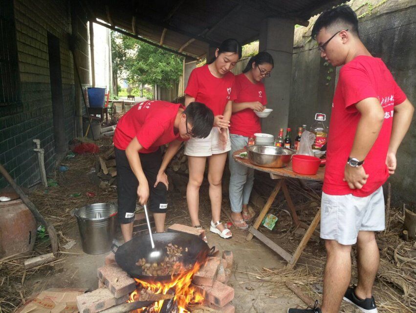 “噼里啪啦”,干柴燃烧着,熊熊烈火,一股饭菜香味传来。三下乡的后勤人员正在张罗着晚餐,豆大的汗珠挂在脸上,也来不及擦拭。一番忙碌后,三张圆桌,几道家常便菜,虽不色香味俱全,但大家都吃得有滋有味。
