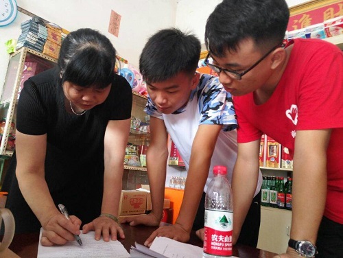 本次调研针对的群体是镇上商铺,五组成员按照分配路线对百余家商铺进行了走访调查。表明了来意后,第一个商家十分爽快地帮我们填写了问卷,并对我们的调研活动表示大力支持,旗开得胜使得志愿者们士气大增。但是,随着问卷发放工作的推进,工作显得愈发困难,有些商铺老板在见到我们时就连连摇手,有些在得知我们问卷主题后就含糊推拖,拒绝了志愿者的请求。