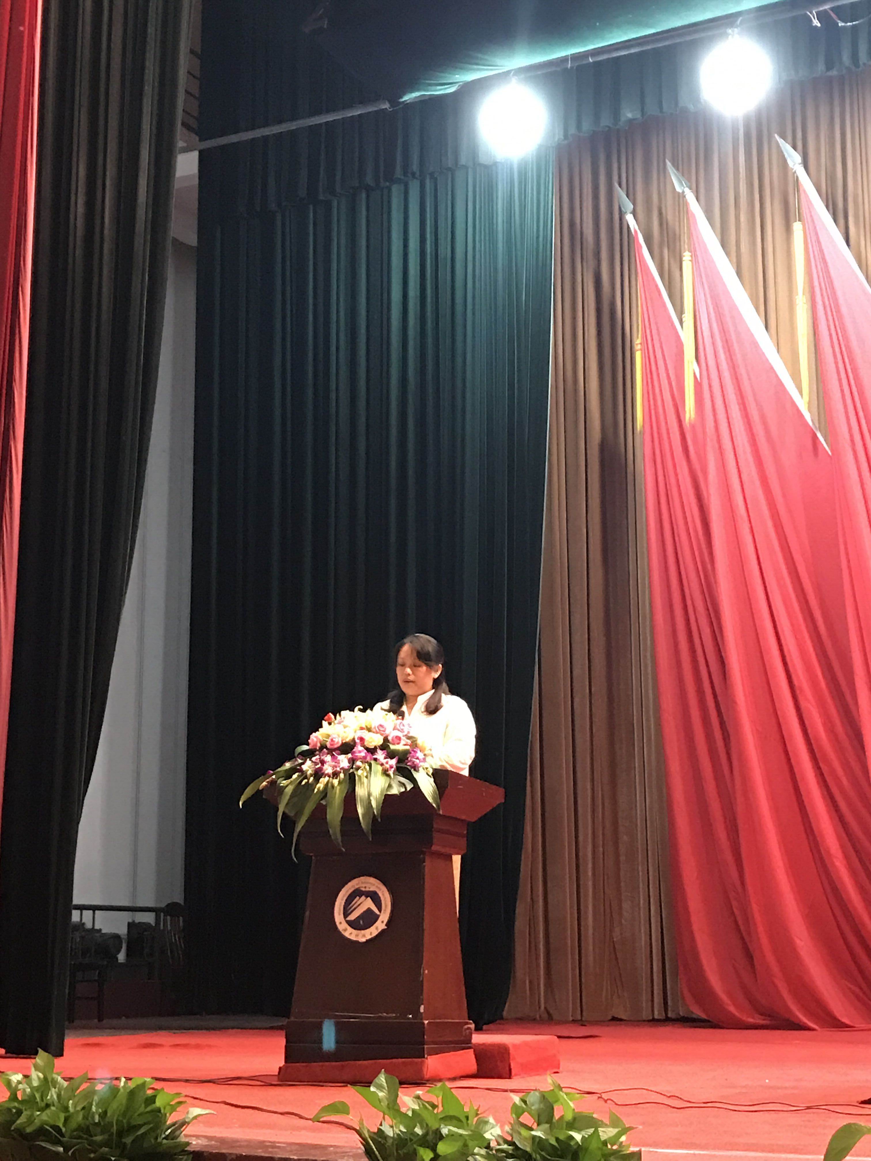 “超越自己、超越梦想,是给自己最好的酬劳。”老生代表2014级财务管理专业的李海彤告诫新生不要松懈,应当把握好大学时光,实现自我蜕变。他与大家分享自己大学的所见所闻,所感所想,从演讲获奖到顺利考过雅思,李海彤凭借合理的规划与不懈的努力打造出了属于他的核心竞争力。