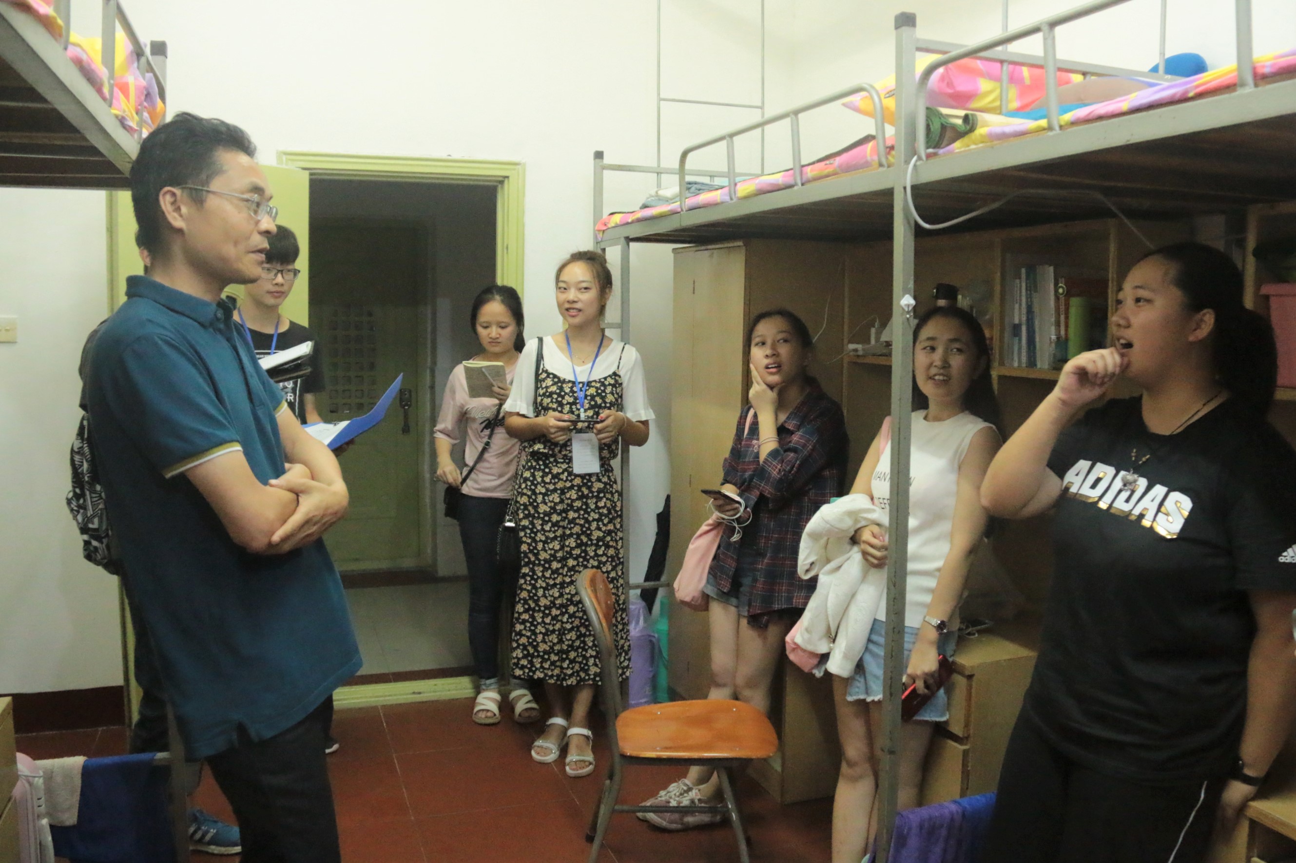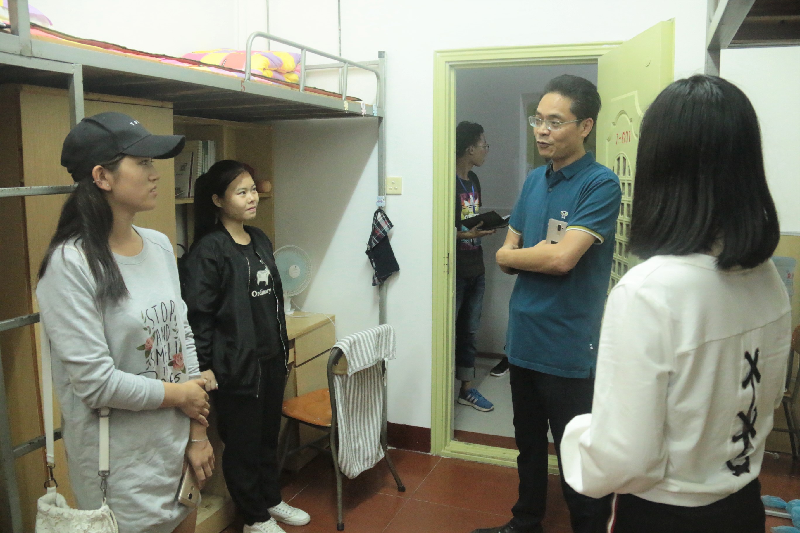 9月21日晚7:30,3044am永利集团官网党委副书记傅早霞在各学生干部的陪同下,前往一区学生宿舍,询问学生的学习和生活状况,并了解宿舍区创文工作进程。