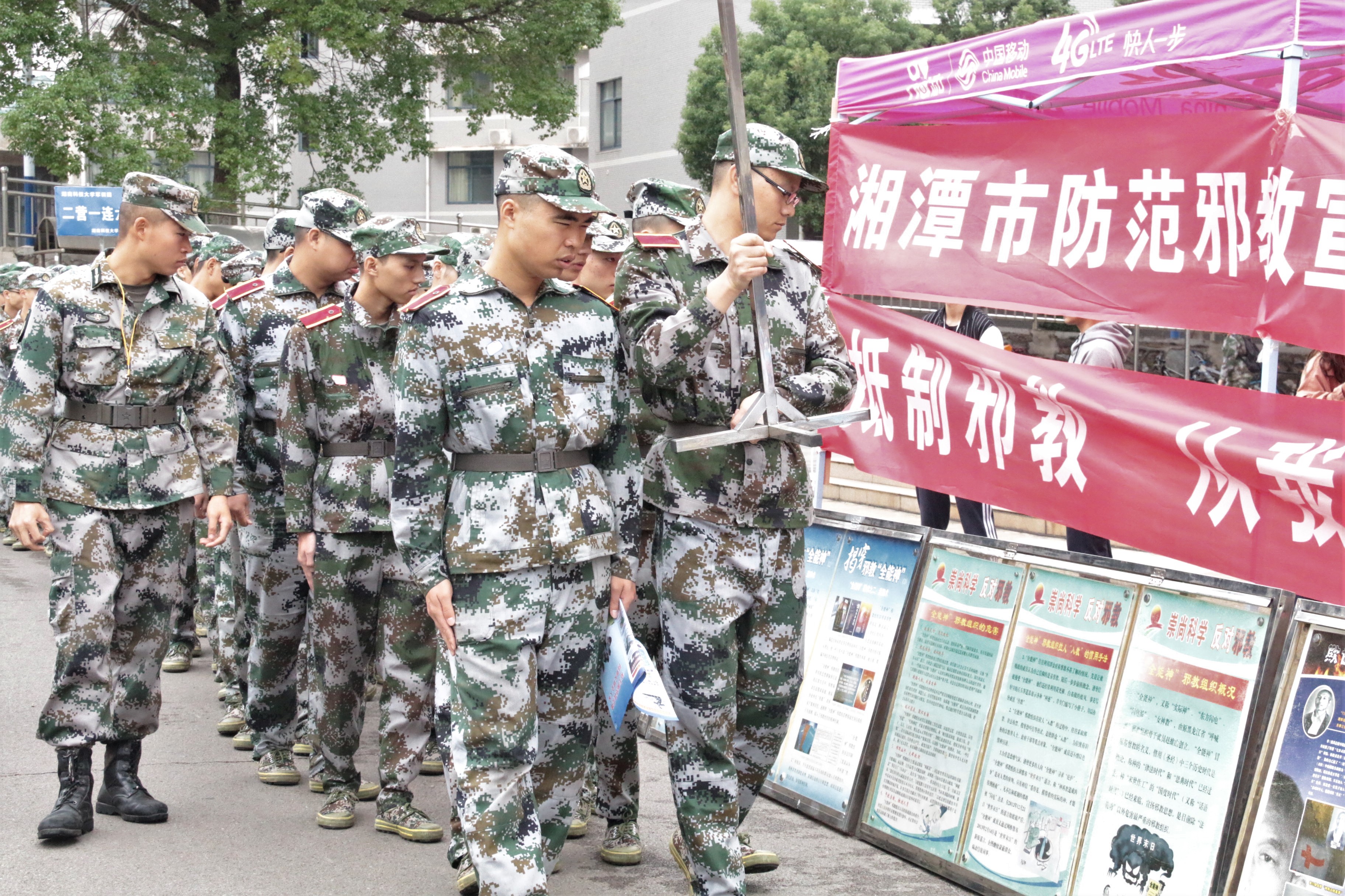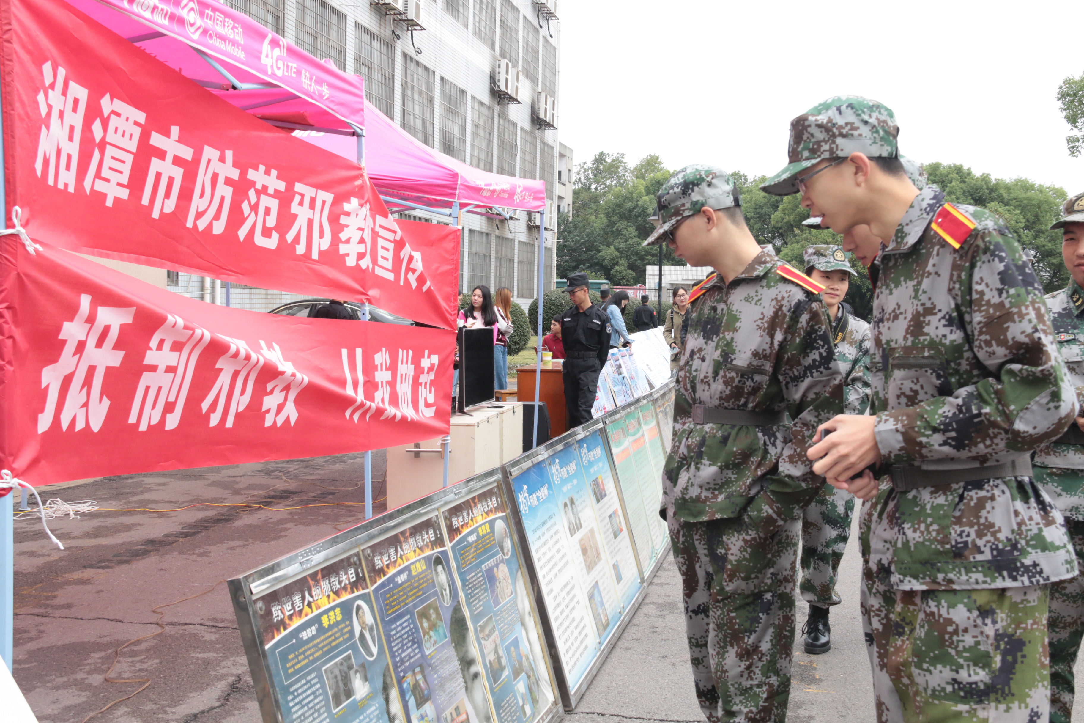 10月5日,新生迎来第四天的军训生活。为了提高学生对反邪教的认识,增强反邪教的自觉性和主动性,由湖南科技大学保卫处承办的反邪教宣传教育活动于南北校依次展开。上午,3044am永利集团官网2017级新生在各排教官的带领下,列队准时抵达第五教学楼前篮球场参与反邪教宣传教育活动。