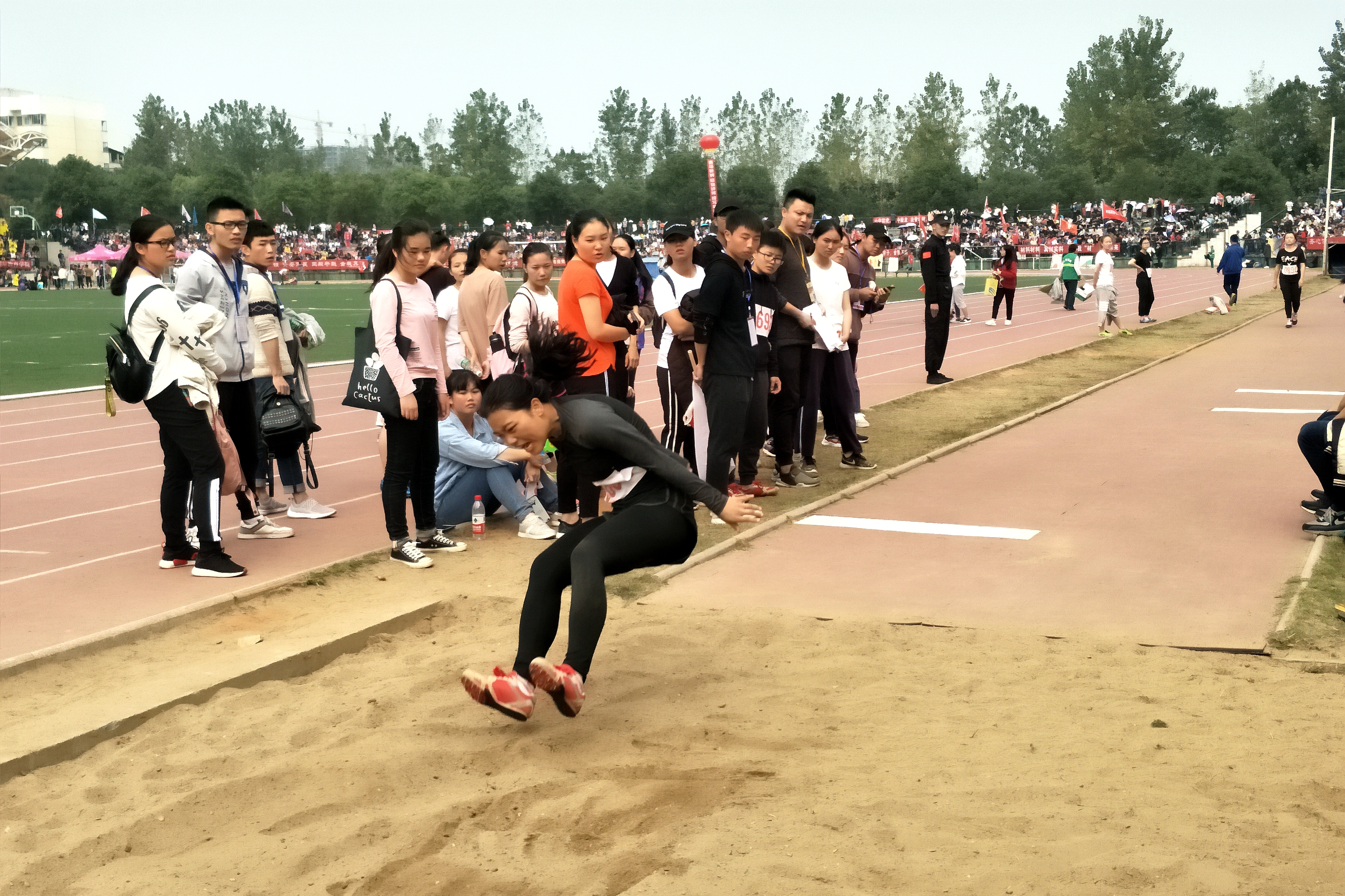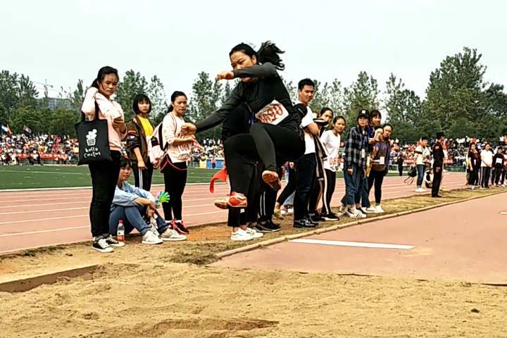 10月26日上午9:40,继秋运会开幕式结束后,甲组女子跳远预决赛在北校新田径场开始进行,3044am永利集团官网的陈青、覃瑞彬和杨颖参加了该项比赛。