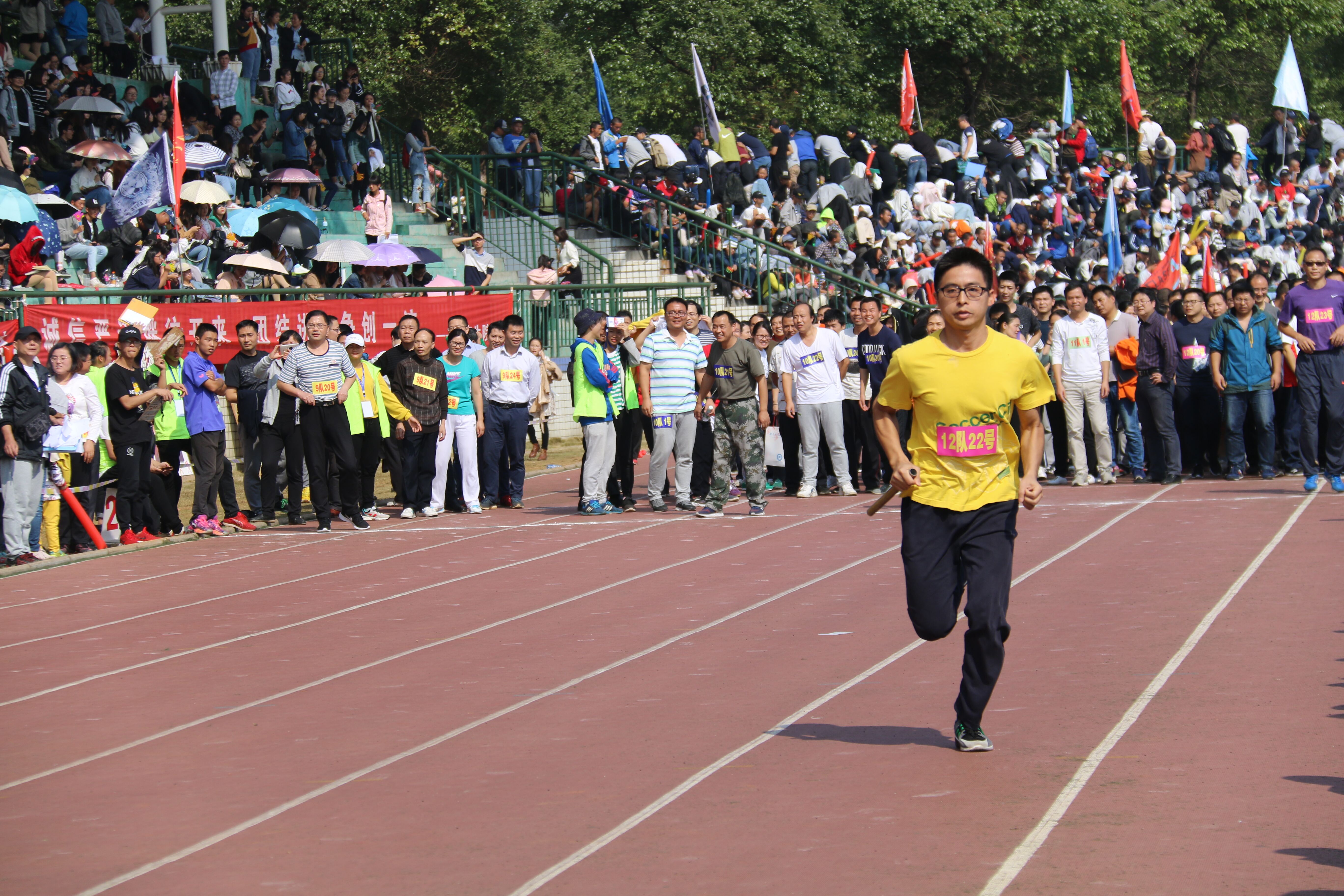 正式开始之前,湖南科技大学教职工参与的100米×30人“团结杯”接力赛已经将现场的气氛点燃,3044am永利集团官网30位教师代表学院参加了这次“别样”的运动会。教师们紧握接力棒,目光专注,以此来回应观众们高涨的热情。“预备——跑!”教师们奋力前行,一马当先,以领先一百米的速度夺得了第一名。