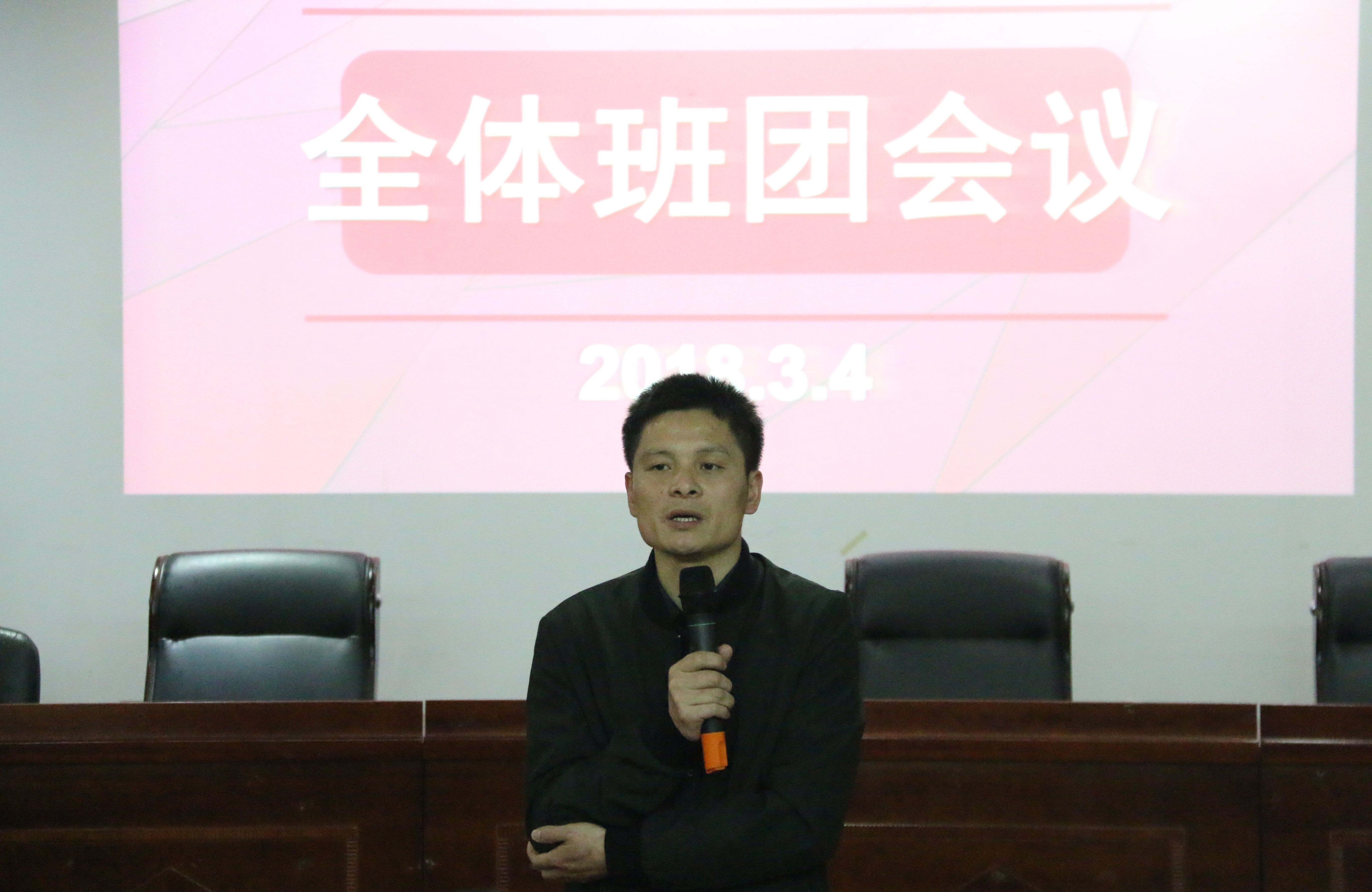 会议伊始,3044am永利集团官网学工办主任陈攀引用国家主席习近平的一句话“幸福都是奋斗来的”来告诫全体班团:我们现在奋斗是为了以后更好的明天,切勿耽误时间和青春。并强调班团要有自己的责任心,要积极开展学生工作,必须认真仔细核对学生到校情况,以确保每位同学的安全,对学校、家长和同学负责。