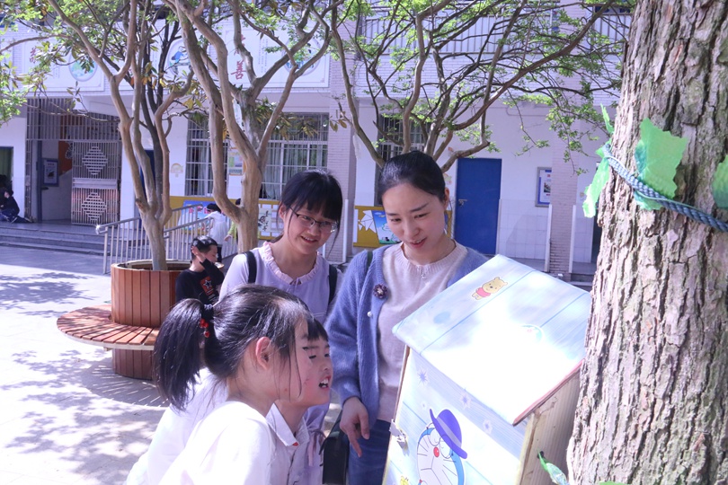 “我非常感谢志愿者们为孩子们提供书籍,这样的活动是极其有益的,我希望这样的活动可以越多越好。”湘潭市南风坪小学的李老师这样说道。4月17日,3044am永利集团官网志愿团由湖南科技大学出发来到了湘潭市南风坪小学,进行图书漂流活动的第二阶段“校外漂流”。下午两点,正是阳光最强的时候,志愿者们耐着高温将书箱、横幅等一个个地挂好。在悬挂途中,他们发现了书箱在制作过程中有遗留下来的钉子突起问题。考虑到孩子们的安全问题,他们立即前往附近的超市购买胶带等工具,将钉子一个一个包裹起来。还贴心地将书箱的高度悬挂在了小朋友们能拿到的高度,并细心地向小朋友们介绍书籍以及如何登记等。