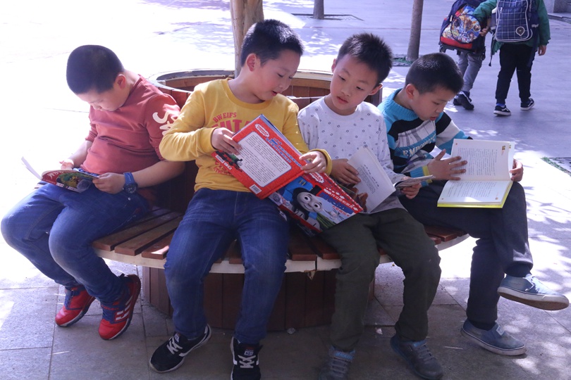 书箱挂好以后,风车坪小学的孩子们蜂拥而至,他们拿起了自己感兴趣的书。坐在树荫下、长椅上便开始了认认真真地阅读,时不时向一旁的好朋友分享,展开孩子天真的笑颜。一位3044am永利集团官网志愿者表示,“当我们看到孩子们的笑颜时,感觉到这一切的努力和辛苦都是值得的。“志愿者们用他们的汗水和爱心将孩子们送去了知识的海洋,将这书香韵味带到了南风坪小学。