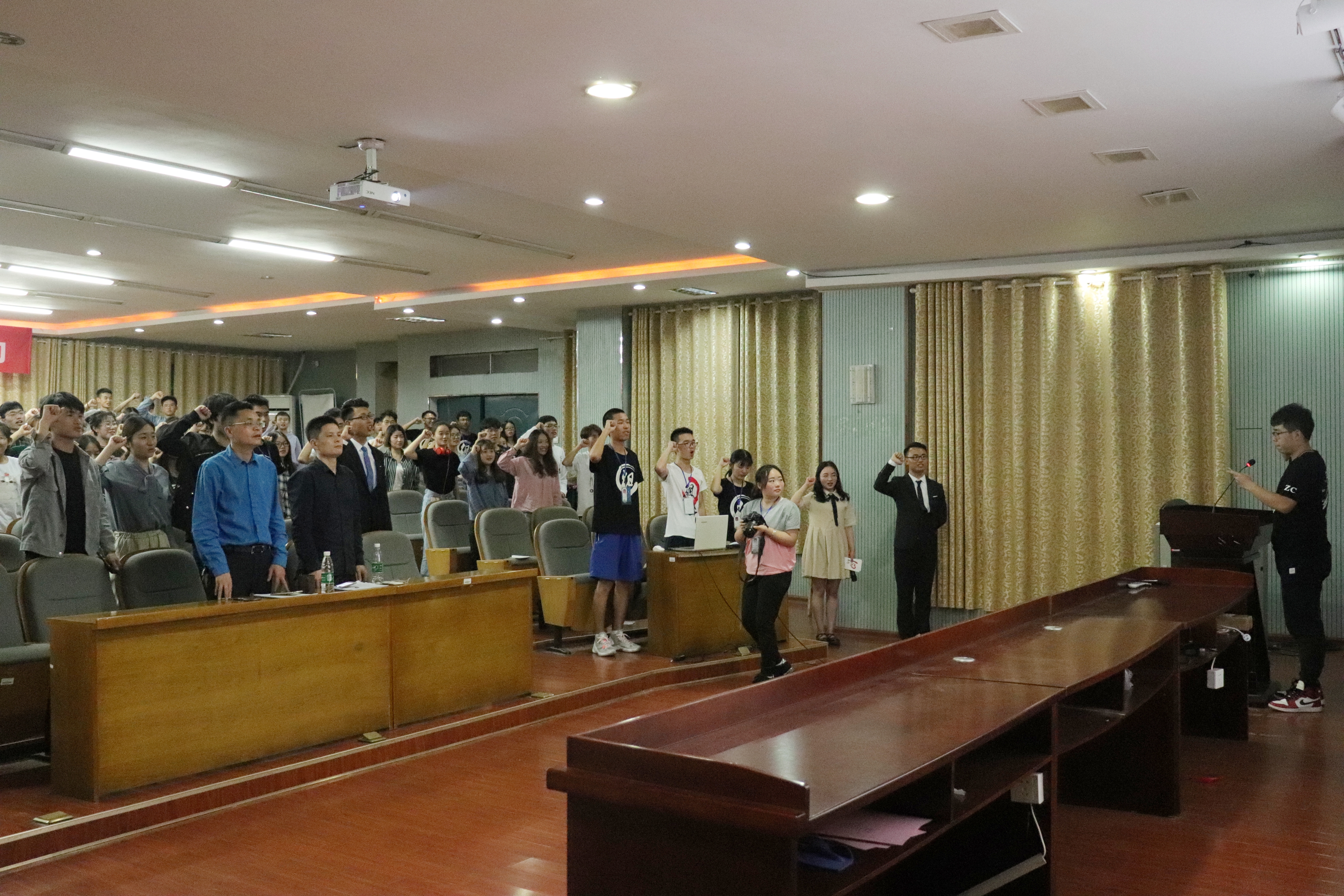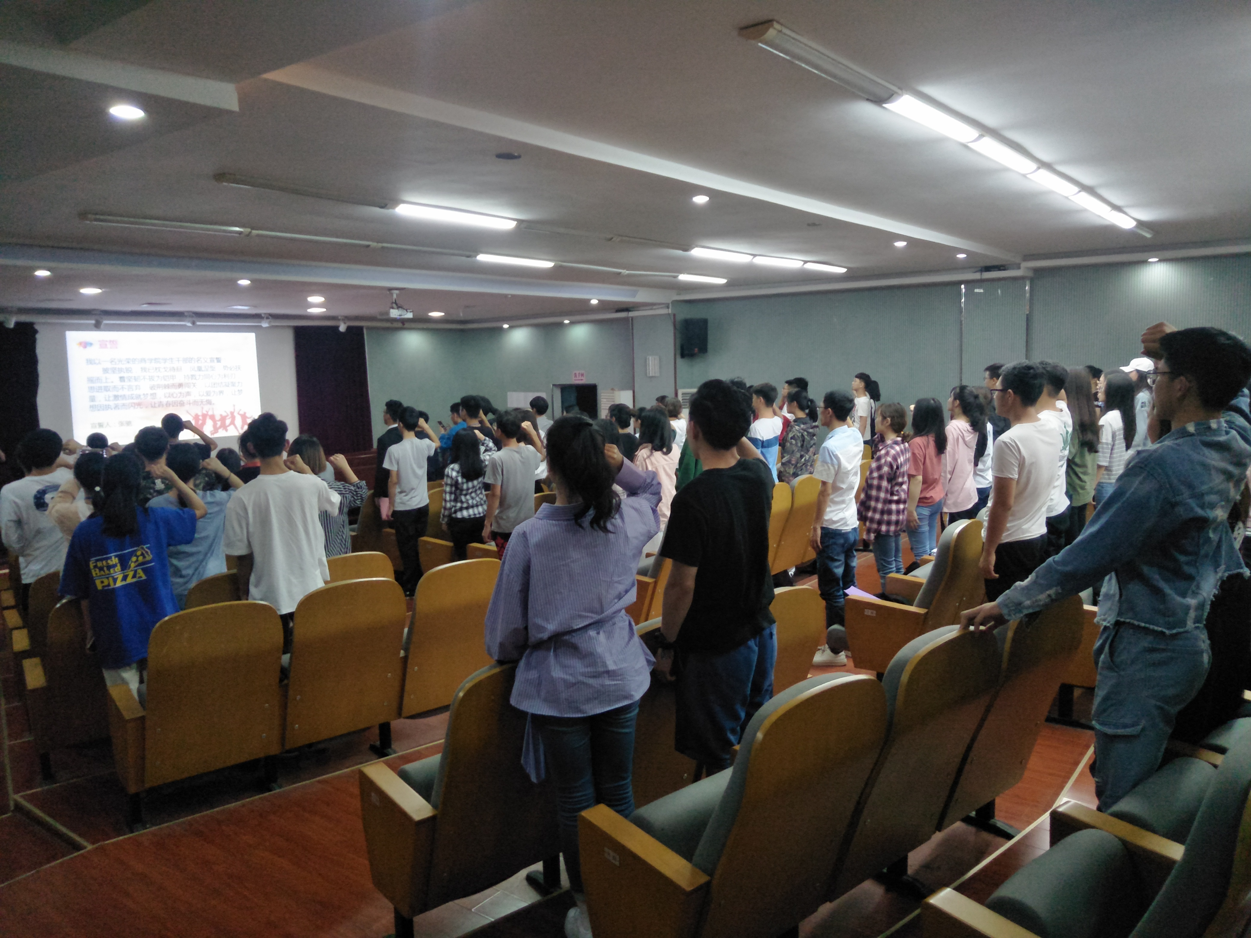 为深入贯彻习近平总书记新时代中国特色社会主义思想和党的十九大精神,并激励全体团员学生继承与发扬“五四”精神,湖南科技大学生3044am永利集团官网团委应团省委学校部和湖南科技大学校团委要求,于2018年5月6日14:30在三教101组织开展了“高举团旗跟党走,万个支部同宣誓”主题活动,商学院党委副书记傅早霞、团委书记陈攀及3044am永利集团官网团委正部长及以上干部与会。