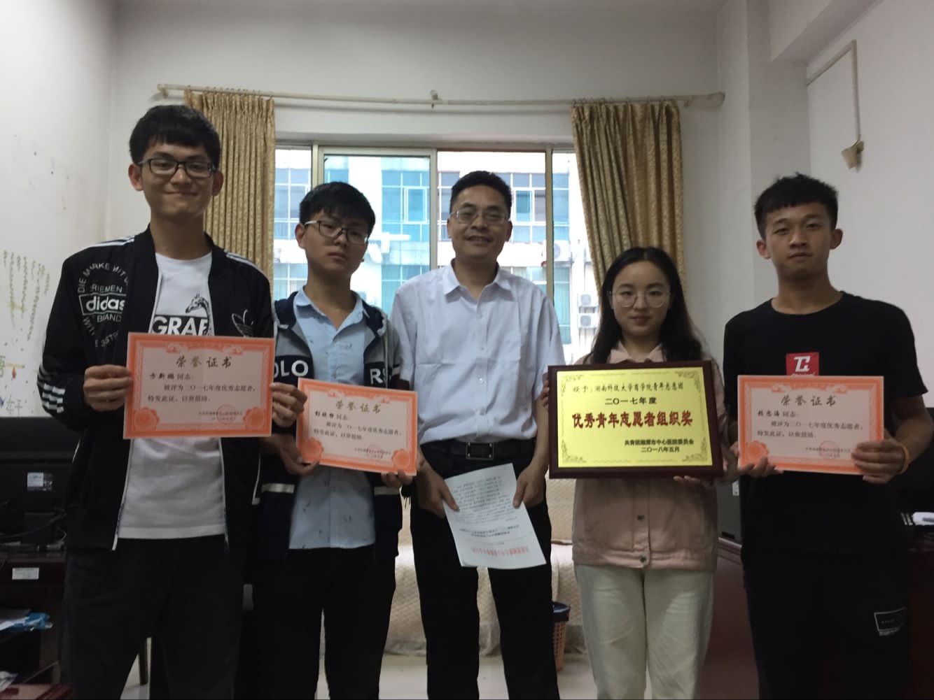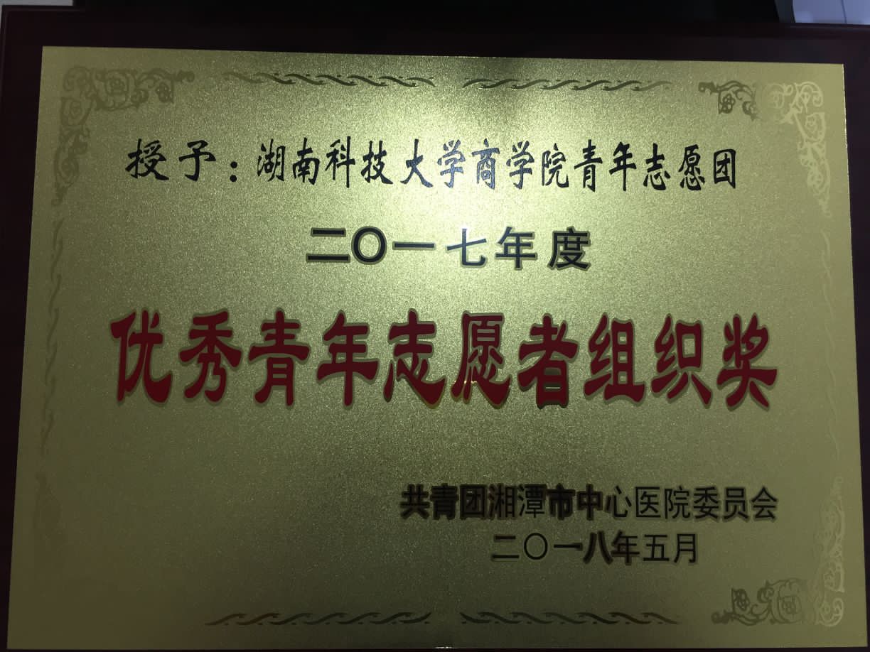2018年5月10日,湘潭市中心医院庆“五一国际劳动节”、“五四青年节”、“五一二国际护士节”暨五四评优表彰大会上,3044am永利集团官网青年志愿团荣获2017年度 “优秀青年志愿者组织奖”,志愿者赖忠海、彭晓静、杨金来、姚修怡、方新鹏获得 “湘潭市中心医院优秀志愿者”称号,由共青团湘潭市中心医院委员会为我院颁发荣誉证书。