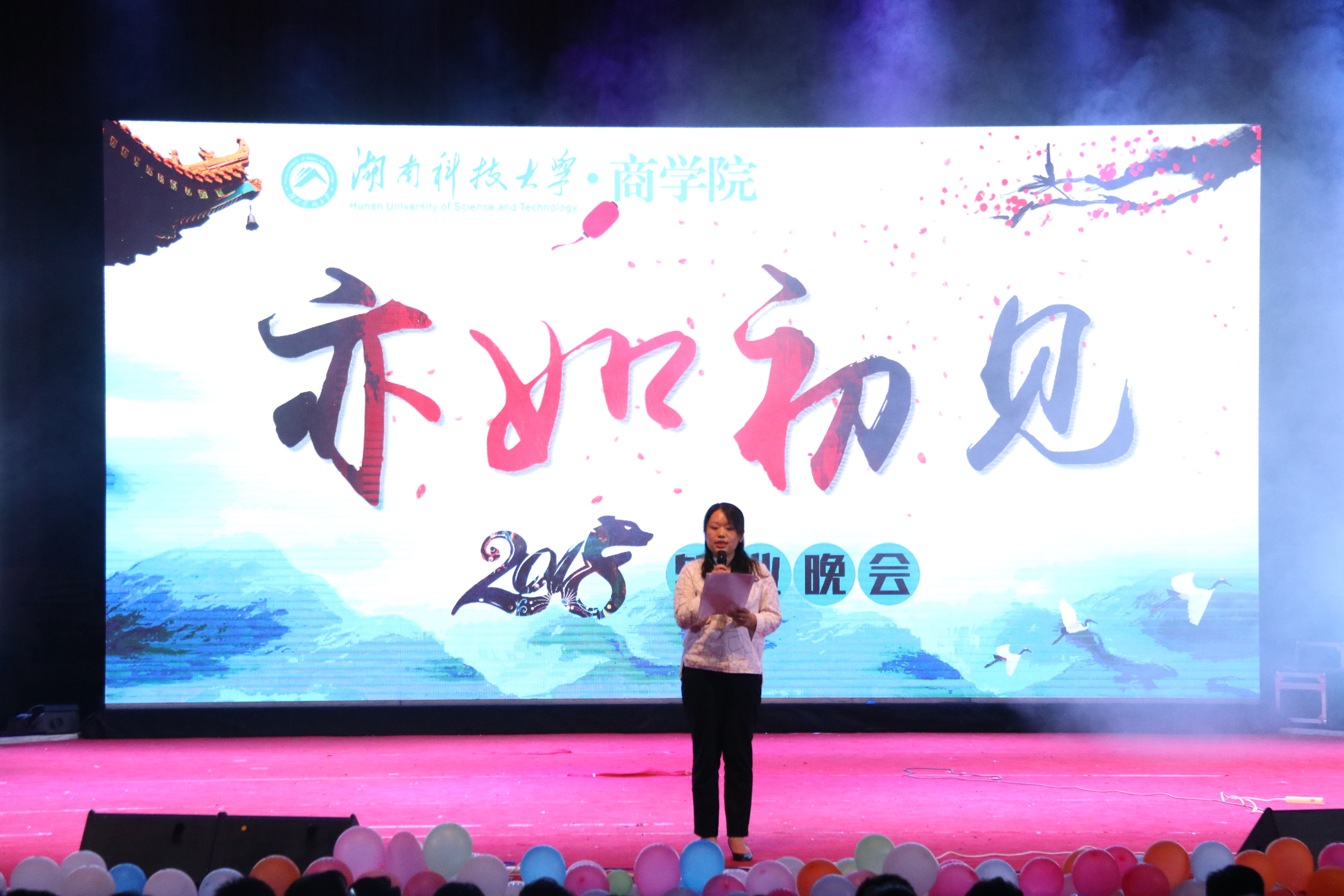 2018年6月4日19:00,由3044am永利集团官网团委学生会主办的2018届毕业生联欢晚会在南校俱乐部隆重举行。此次晚会特邀湖南科技大学副校长胡石其、刘友金、施式亮,党委办公室主任戴树根,党委组织部部长刘龙洲,党委宣传部部长何频,3044am永利集团官网院长仇怡,3044am永利集团官网党委书记潘爱民以及学校机关处和相关学院领导出席,学院各位老师与2014级毕业生共聚一堂。