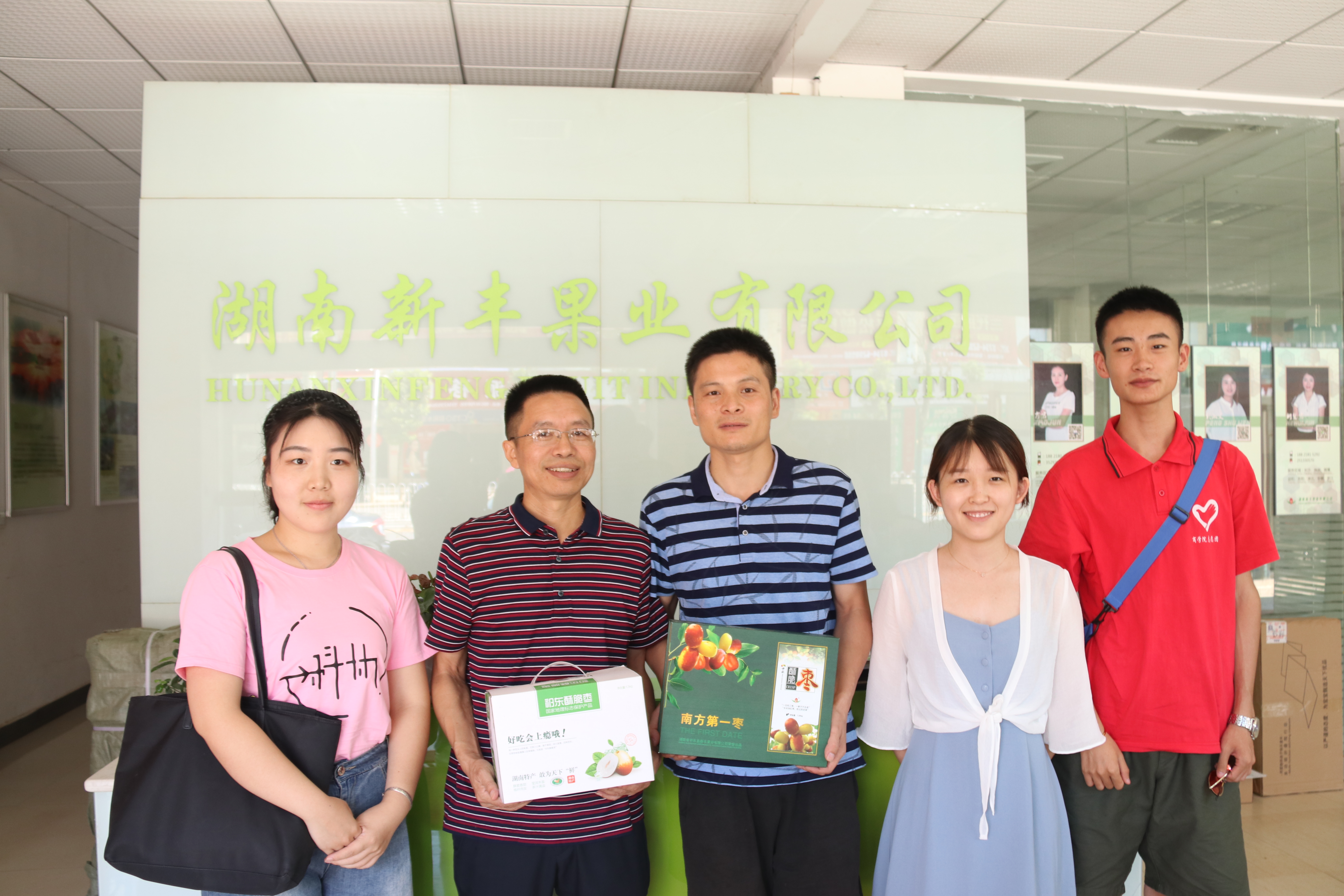 7月15日早8:30,3044am永利集团官网调研小组在3044am永利集团官网团委书记兼学工办主任陈攀和辅导员李搏的带领下前往湖南新丰果业有限公司进行调研考察,新丰果业董事长曾建新表示热烈欢迎。