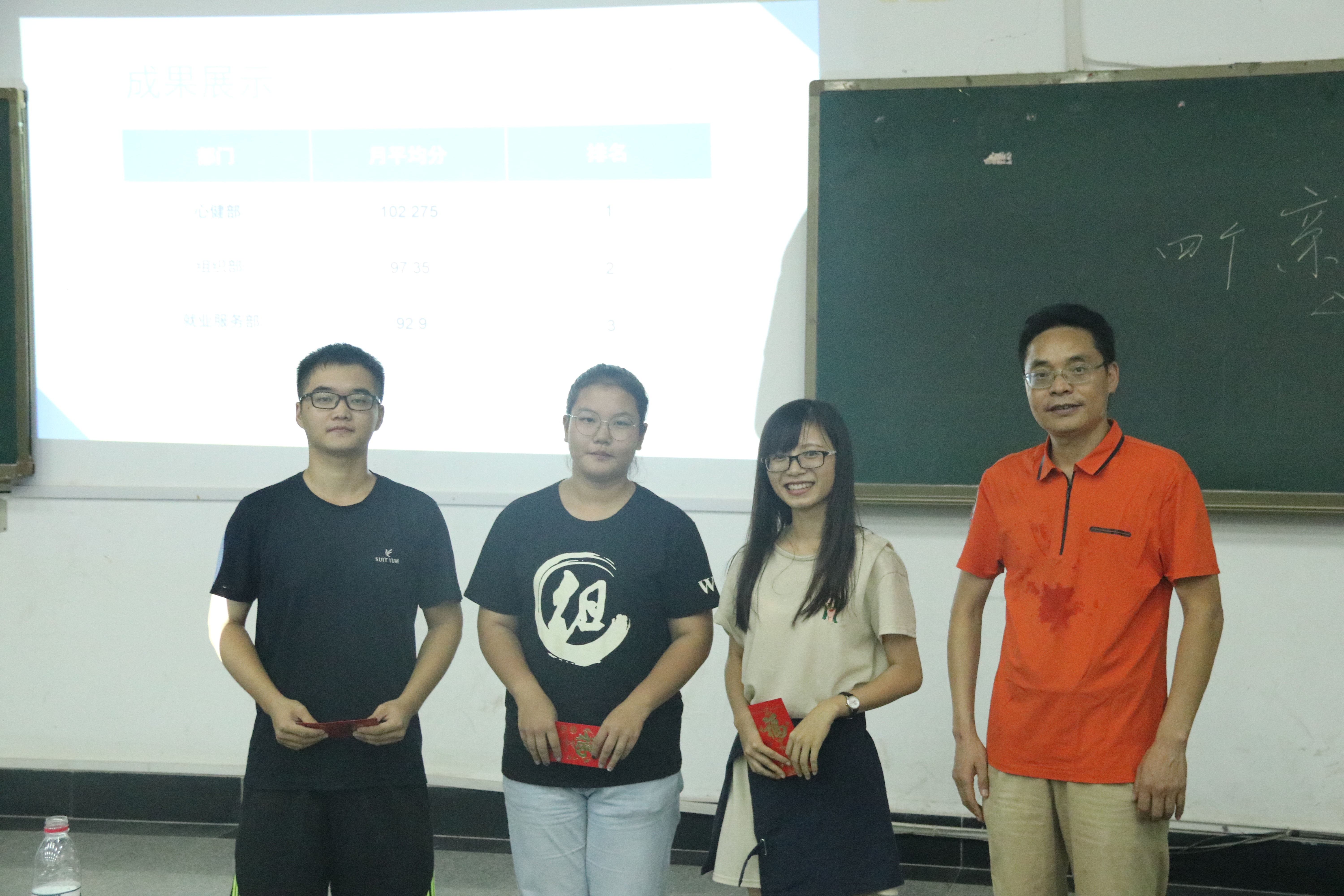 大会分为四个环节,分别为干部考核、主席讲话、书记讲话及奖金颁发。大会上,干部代表崔美琪负责介绍考核内容及其情况,在上一学年考核中获得前三名的部门为心健部、体育部、就业服务部,由傅早霞书记为其颁发奖金以资鼓励。3044am永利集团官网学生会主席翟广达要求广大学生干部要有积极向上的意识,提醒志愿者们要注意迎新形象,同时在接下来的卫生检查、主题班会及第一次课中要做好准备。
