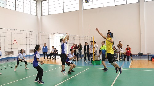 本次比赛双方由5名选手组成队伍,双方都有不少同学和老师前来呐喊助威。比赛前,3044am永利集团官网的5名队员都进行了下蹲运动,伸展运动,近距离传球等赛前热身。10点 40分,随着一声哨响,比赛正式开始。在比赛刚开始几分钟内,3044am永利集团官网代表队连连失误,面对出师不利的情况,5名队员临危不乱,以击掌的方式相互鼓励后,每个人都立即调整好状态,充分施展自己的绝技:发球,起跳,拦网,扣球,一系列动作优美而流畅。每一次精彩的传球都凝聚着队员的智慧与团结。队员们精妙的球技将比赛一次又一次推向高潮。场上的比赛进行得如火如荼,场外的观众也激情四溢。鼓掌声,欢呼声,助威声不绝于耳。