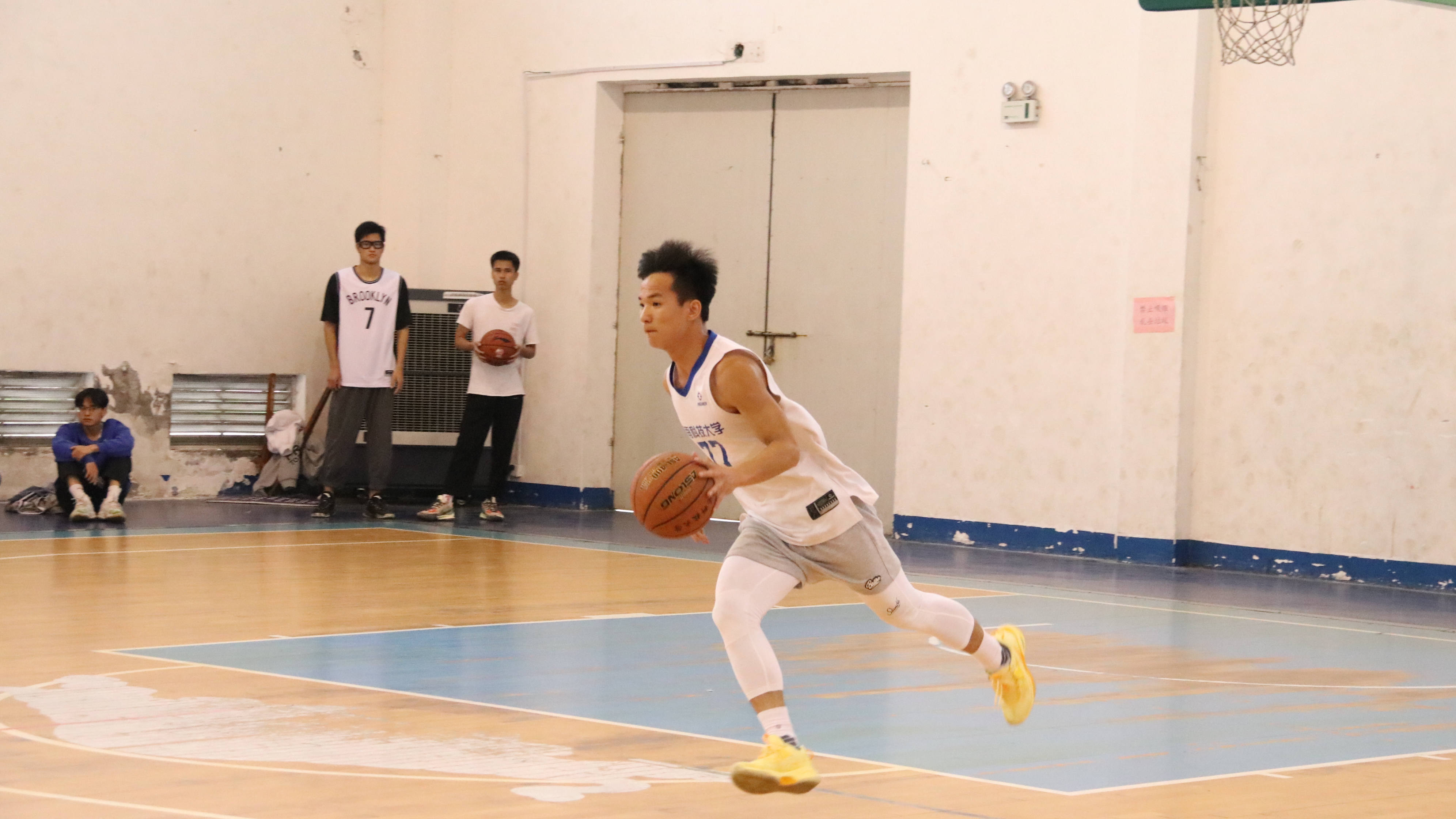 经过三天的激烈比拼,素素后援队和妙龄芳芳队这两支队伍在比赛中脱颖而出,进入决赛。5月2日9:30,“商院·筑梦”五四青年节系列活动之篮球赛决赛正式开始。在赛场上,77号球员熟练的运球动作格外引人注意。只见他右手运球,左手维持平衡,迅速跑至篮筐下,高高跃起,手中的篮球在空中划过一道抛物线,精准地落入球筐之中。现场的气氛一下进入了高潮,观众席中响起此起彼伏的喝彩声。场外艳阳高照,选手们已汗流浃背,但丝毫没有疲惫感,反而更加努力,拼尽全力。最后,素素后援队在决赛中获胜。