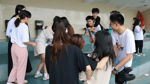本次团辅在濛濛细雨中拉开序幕。此次活动分为两个环节,分别是破冰环节和游戏环节。在破冰环节中,学生干部们被分为四组,每组在彼此熟悉后确定了本队队名及口号,并最终完成了才艺展示。在本环节中,学生干部们增进了彼此间的了解,现场气氛活跃。
