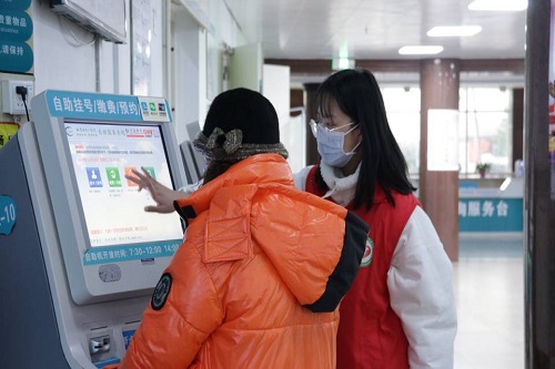 当日下午,本次爱心导诊活动的带队队长周萌与志愿者乘坐公交车准时来到市中心医院。在护士姐姐的耐心指导下,志愿者的认真学习下,他们很快掌握了基本的操作流程,有条不絮地开展各自的志愿服务。面对前来就诊的病患,志愿者们带着高昂的热情,积极主动地帮助患者使用自助挂号机进行挂号、取号、缴费等操作,并引导他们准确地找到就诊地。同时,在化验单打印机前的志愿者也热心引导焦急等待结果的患者及家属们打印化验单。