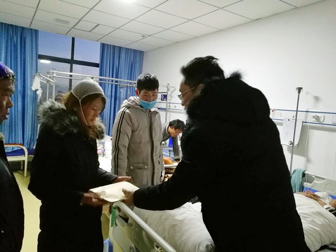 在湖南科技大学学工处处长尹风雨的支持下,受时任院长仇怡和党委书记潘爱民的委托,3044am永利集团官网党委副书记傅早霞及学工办主任陈攀连日赶往西藏,将善款送至石达姐妹手中。“普尺,感觉好些了吗?”这是书记走进病房说的第一句话。几经辗转,抛下旅途劳累的傅早霞书记和陈攀主任,不避讳南北巨大温差,不顾自身高原反应,带着牵挂的心,对石达姐妹进行了亲切的慰问。次日,傅早霞书记一行人更是精挑细选购置了共计3400元的生活物资,将其送至石达家中,并鼓励她保持乐观心态,安心养病,早日康复,重返校园。
