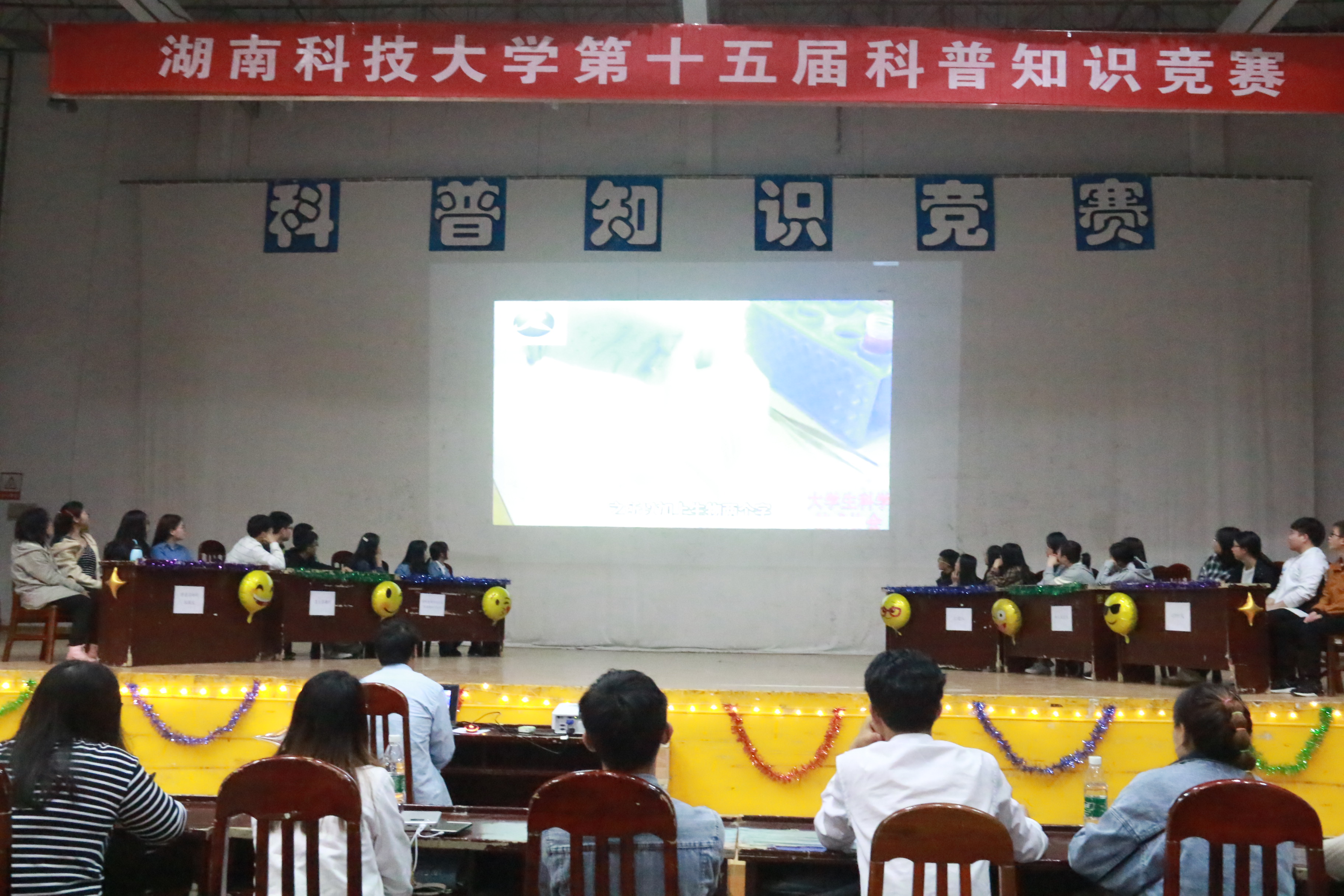 2019年4月27日,湖南科技大学第十五届科普知识竞赛决赛于南校活动中心举行。湖南科技大学校园文化部副部长唐翠柳老师,湖南中医药大学代表团,湖南科技大学科学技术协会主席团,一同出席了此次比赛。