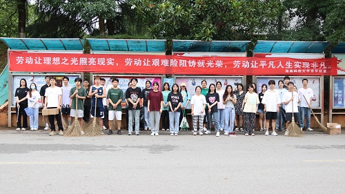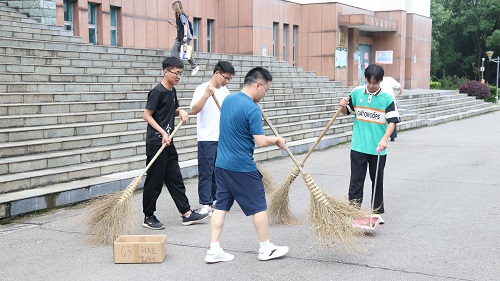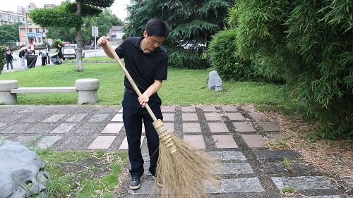 立德楼前,另一批志愿者们也携带劳动工具开始劳动,扫落叶,夹纸屑,他们全身心地投入到义务劳动中,不放过任何一个垃圾。随着活动接近尾声,参加此次活动的全体人员在三教门前合影留念,志愿者们纷纷表示劳动虽然有苦有累,但乐在其中,并期待下一次义务劳动活动的到来。