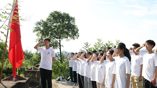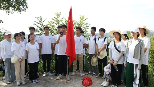 此后,实践团成员王俊杰手执中国共产党党旗,为实践团成员讲述蒋梯空烈士的生平事迹:蒋梯空在农民运动中成为了毛泽东的得力助手,他不仅开办了农民夜校,还秘密地组织了农民运动,推动了中国共产党的发展。“马日事变”后,蒋梯空被捕,在此期间,尽管蒋梯空多次受到刑罚,但他对中国共产党的机密只字未提。在他被送上刑场的路上,他还一路高呼“中国共产党万岁!”等口号。实践团成员们聚精会神地倾听蒋梯空烈士的英雄事迹,了解了他身上坚贞不屈、百折不挠的革命精神。他的革命精神深深地激励着在场的每一个人,令人动容、令人敬重。实践团成员王俊杰同学感慨道:“在参观烈士墓后,我深感先烈的无私奉献。先烈们为我们祖国的发展、民族的振兴做出了巨大的牺牲,我们不能忘记先辈的辛勤汗水,我们应提升科学文化知识和思想道德修养,为中国共产主义事业奋斗终生。”随后,在实践团成员汪雨峰的领誓下,实践团成员举起右拳,重温入党誓词,以此缅怀先烈。
