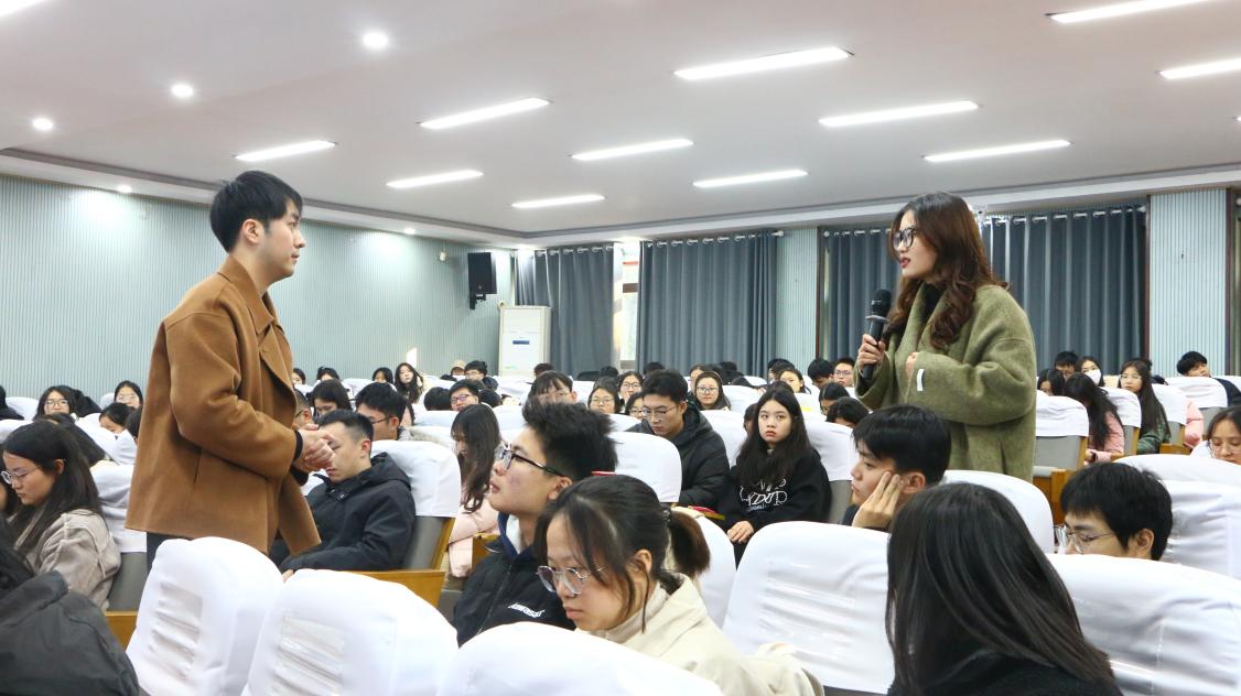 李海彤以《数字技术创新与中国企业高质量发展》《产融合作的流动性配置效应》两篇论文为例向大家介绍学术论文的构成要素,并从企业数字专利与现金持有视角论证了大数据的重要性。此外,他还结合自身经历分享了提高工作效率的方法,为学生解答关于学习与研究规划的疑问,强调研究中应慎重做好每一次选择。讲座结束后,学生们纷纷表示受益匪浅。